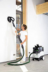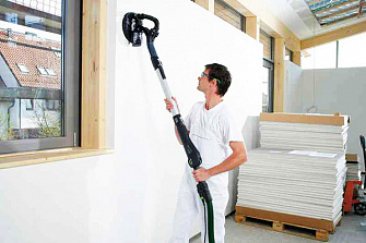 Основной специализацией машинки от Festool PLANEX new LHS 2 225 EQI является шлифование поверхностей из гипсокартона или сухой шпатлёвки, а также удаление остатков обоев.